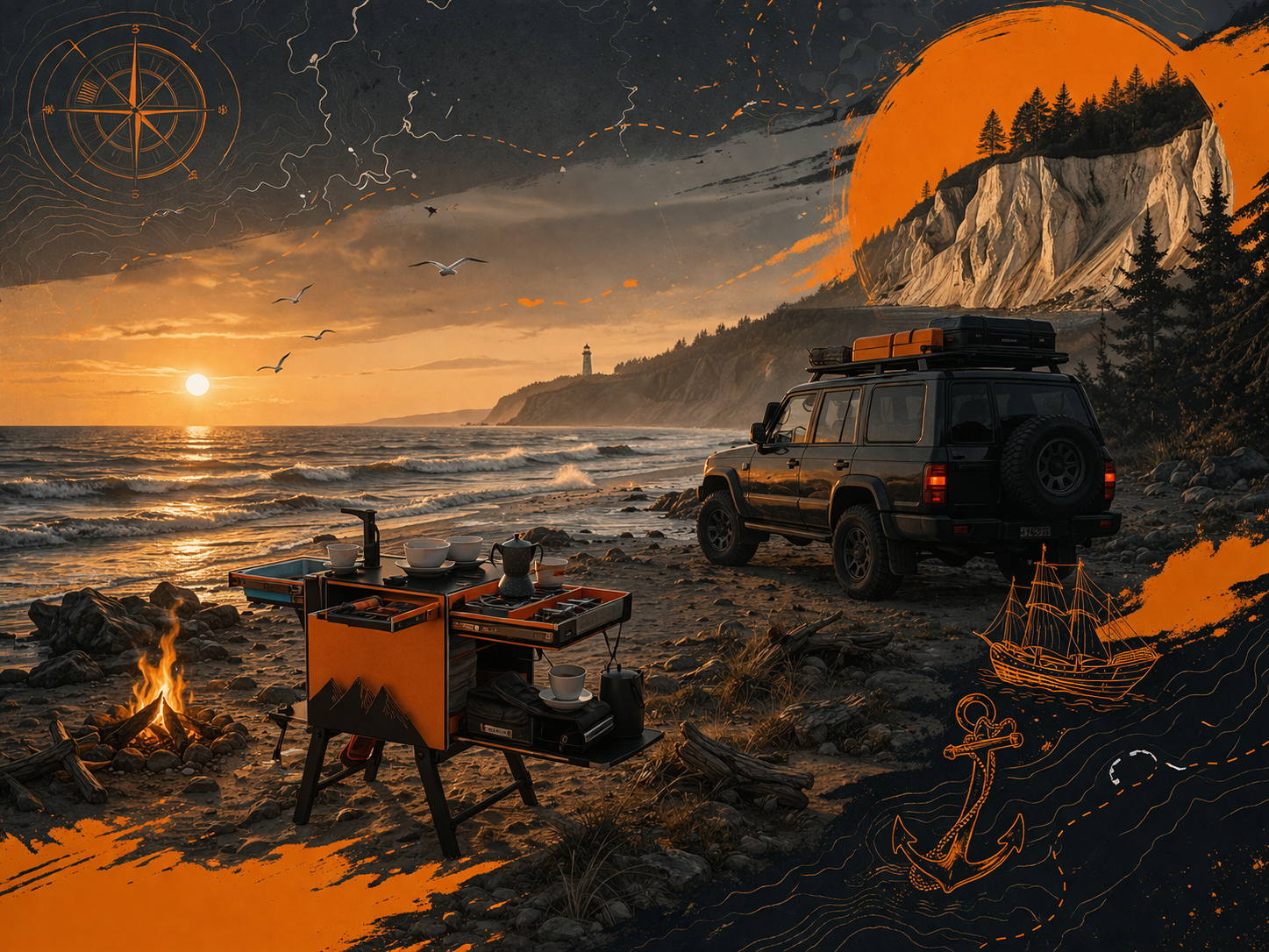 We design mobile camping kitchens, drawer systems for cars and pickups, and a full range of accessories that transform an ordinary journey into a true adventure.