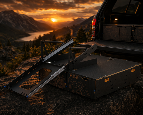 We design mobile camping kitchens, drawer systems for cars and pickups, and a full range of accessories that transform an ordinary journey into a true adventure.